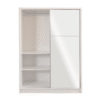 Conçue pour gagner de l’espace, cette armoire utilise des portes coulissantes, idéales dans les pièces où l’espace devant le meuble est limité. Son intérieur bien pensé offre une organisation fonctionnelle avec une combinaison de penderie, étagères et compartiments pour vos vêtements, accessoires et linge de maison.