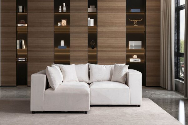 Avantages : ✔ Adaptable à tous les espaces grâce à sa modularité ✔ Confort optimal pour toute la famille ✔ Apporte une touche chic et lumineuse à votre salon ✔ Meuble pratique, esthétique et durable.