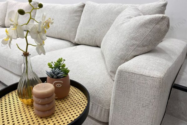 Grâce à sa configuration modulable, ce canapé s’adapte facilement à votre espace et à vos besoins. L’ensemble 4+1 accompagné d’un pouf offre une grande capacité d’assise, idéale pour recevoir famille et amis ou profiter de moments de détente en toute convivialité.