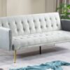 Le canapé SARA incarne l’élégance moderne avec son revêtement en velours vert sapin capitonné et son design inspiré de l’art déco. Convertible grâce à son mécanisme clic-clac, il se transforme en lit d’appoint confortable pour deux personnes, parfait pour recevoir vos invités en toute simplicité.