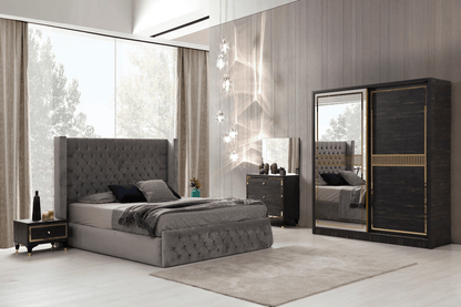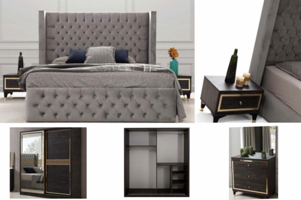 Illuminez votre chambre avec notre modèle complet GOLF composée d’un cadre de lit, d’une armoire, de deux chevets et d’une commode (+ miroir).