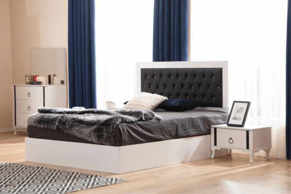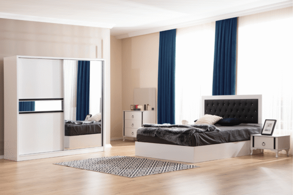 Illuminez votre chambre avec notre modèle complet Inci composée d’un cadre de lit, d’une armoire, de deux chevets et d’une commode avec miroir. Une chambre chaleureuse qui vous apportera confort et bien-être.