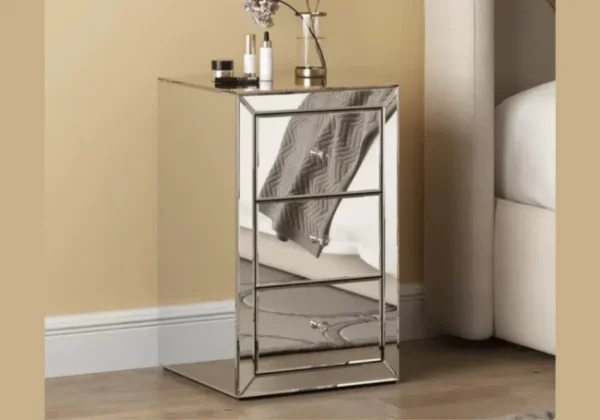 Le chevet Miroir Adel, mesurant 38x38x60 cm, allie glamour et fonctionnalité. Son design élégant en miroir crée une atmosphére lumineuse, tandis que ses dimensions compactes offrent un rangement pratique pour votre chambre.
