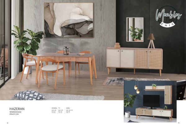 La salle à manger Hazeran Atlantik Çam est un ensemble raffiné mêlant charme naturel et modernité.