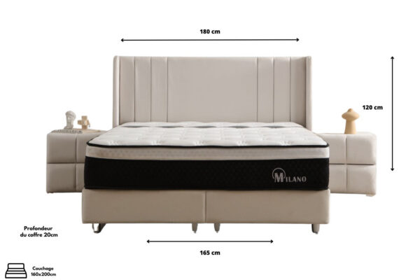 Doté d’un coffre de rangement spacieux avec système relevable, il permet d’optimiser l’espace en toute discrétion. Idéal pour ranger couettes, oreillers ou linge de lit, ce système pratique facilite l’organisation de votre chambre.