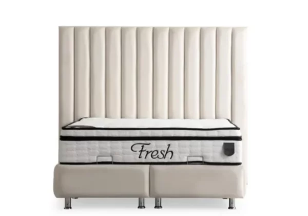 Votre lit double coffre Athena apporte élégance et modernisme à votre chambre à coucher. Les éléments constitutifs : tête de lit en velours d’une hauteur de 160 cm en tissu velours et pieds de lit chromés. .