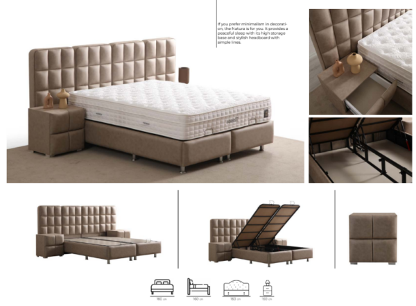 Pensé pour allier esthétique et praticité, ce modèle dispose d’un grand coffre de rangement intégré sous le sommier. Grâce à son système d’ouverture assistée par vérins hydrauliques, l’accès au coffre est simple et sans effort, parfait pour ranger couettes, oreillers et linge de lit tout en optimisant l’espace de votre chambre.