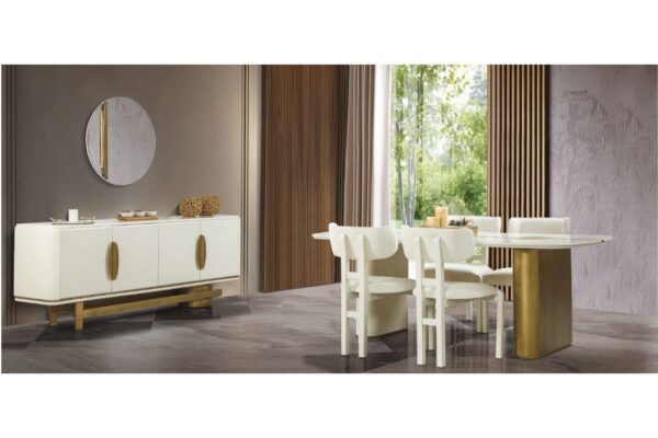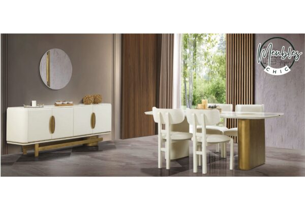 La salle à manger Inci séduit par son design moderne, ses lignes harmonieuses et ses finitions soignées. Elle crée un espace convivial, lumineux et chaleureux, idéal pour partager des moments en famille ou entre amis. Chaque élément de l’ensemble est conçu pour allier esthétique, fonctionnalité et durabilité.