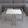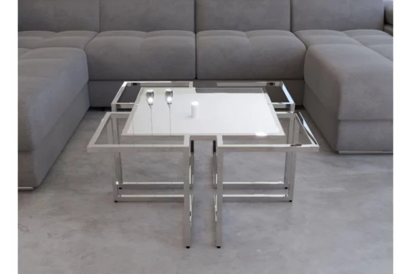 La table basse rectangulaire MORELIA allie modernité et élégance avec ses pieds géométriques argentés. Avec des dimensions de 80 × 80 × 42 cm, elle offre une surface spacieuse pour accueillir vos décorations et accessoires du quotidien. Son design raffiné et contemporain s’intègre parfaitement à différents styles d’intérieur, apportant stabilité, sophistication et fonctionnalité à votre espace de vie.