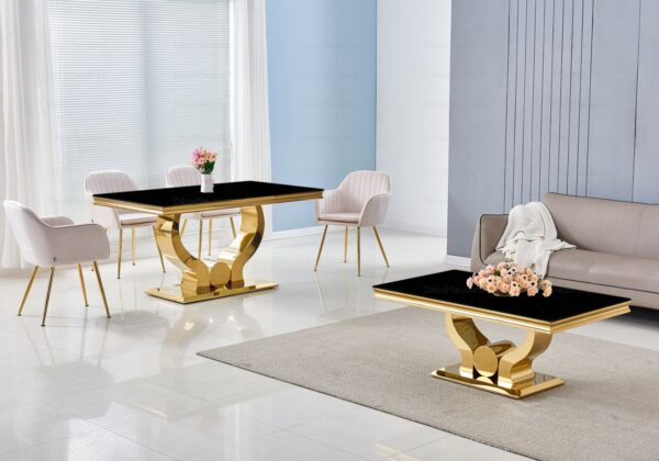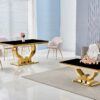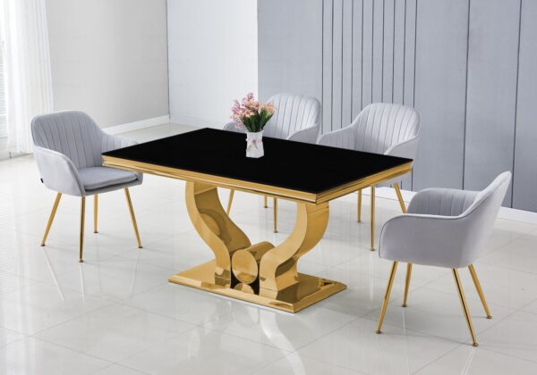 Table en verre noir et chaises doré NEA