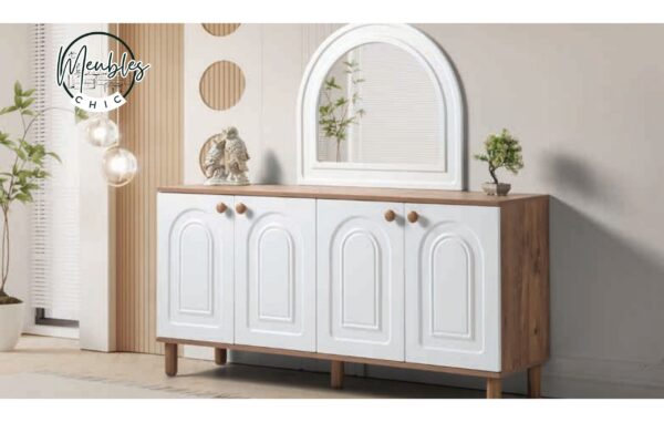 Peut être utilisée comme console, buffet compact ou meuble décoratif.